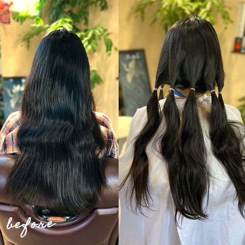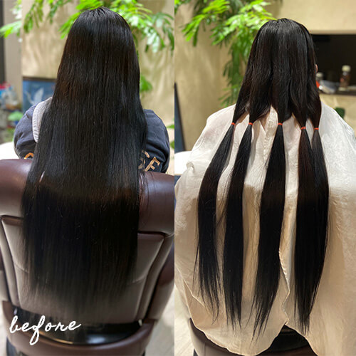 - 施術当日はサロンへお越しいただき、ドネーションヘアをカットさせていただきます。